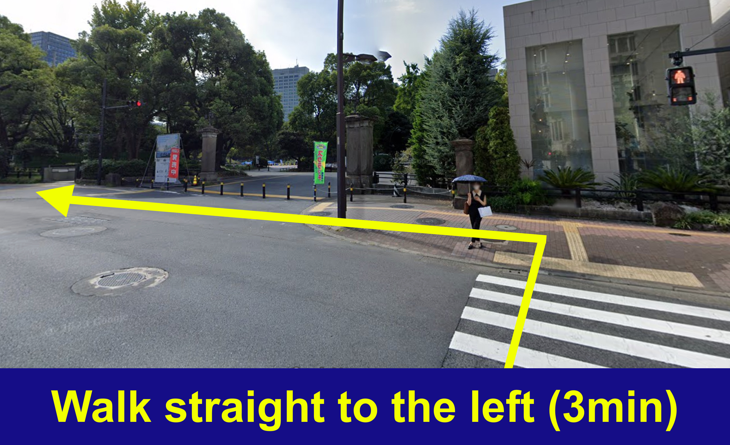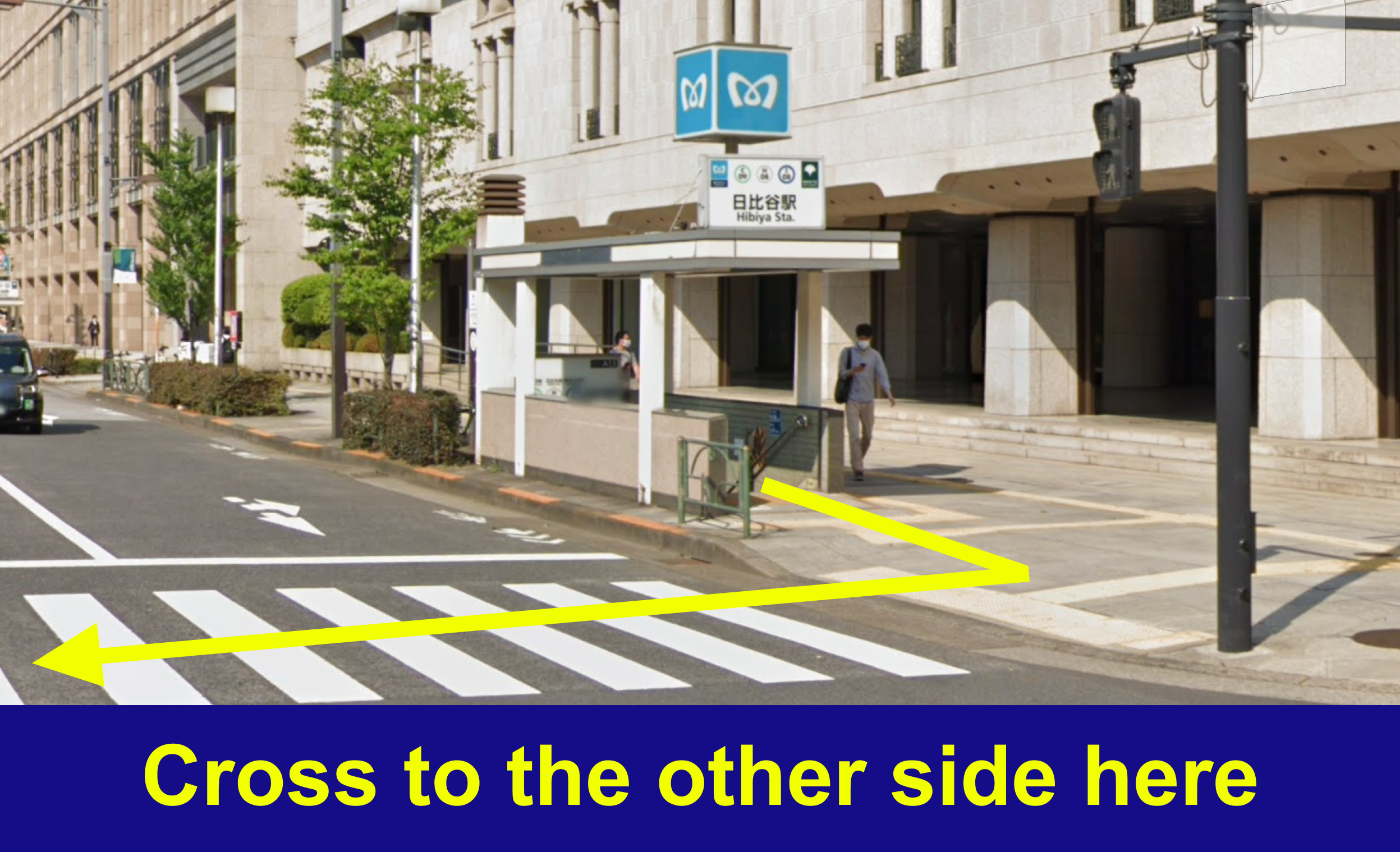 1. Get off at “Hibiya Koen Station” (日比谷駅) on the Mita Line (三田線)or Chiyoda Line (千代田線)